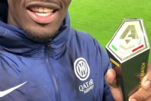 实至名归!独造四球的博尼赛后手持本场MVP奖杯大喊:国米加油