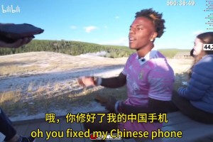 甲亢哥向中国大爷展示他的华为三折叠,并说:你得买华为啊!