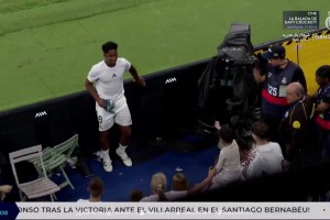虽然恩德里克机会少,但他还是将自己的球衣送给小球迷